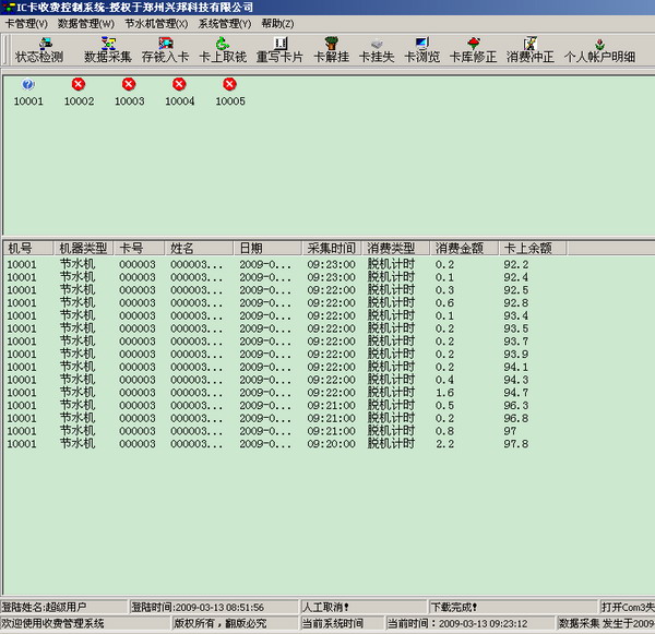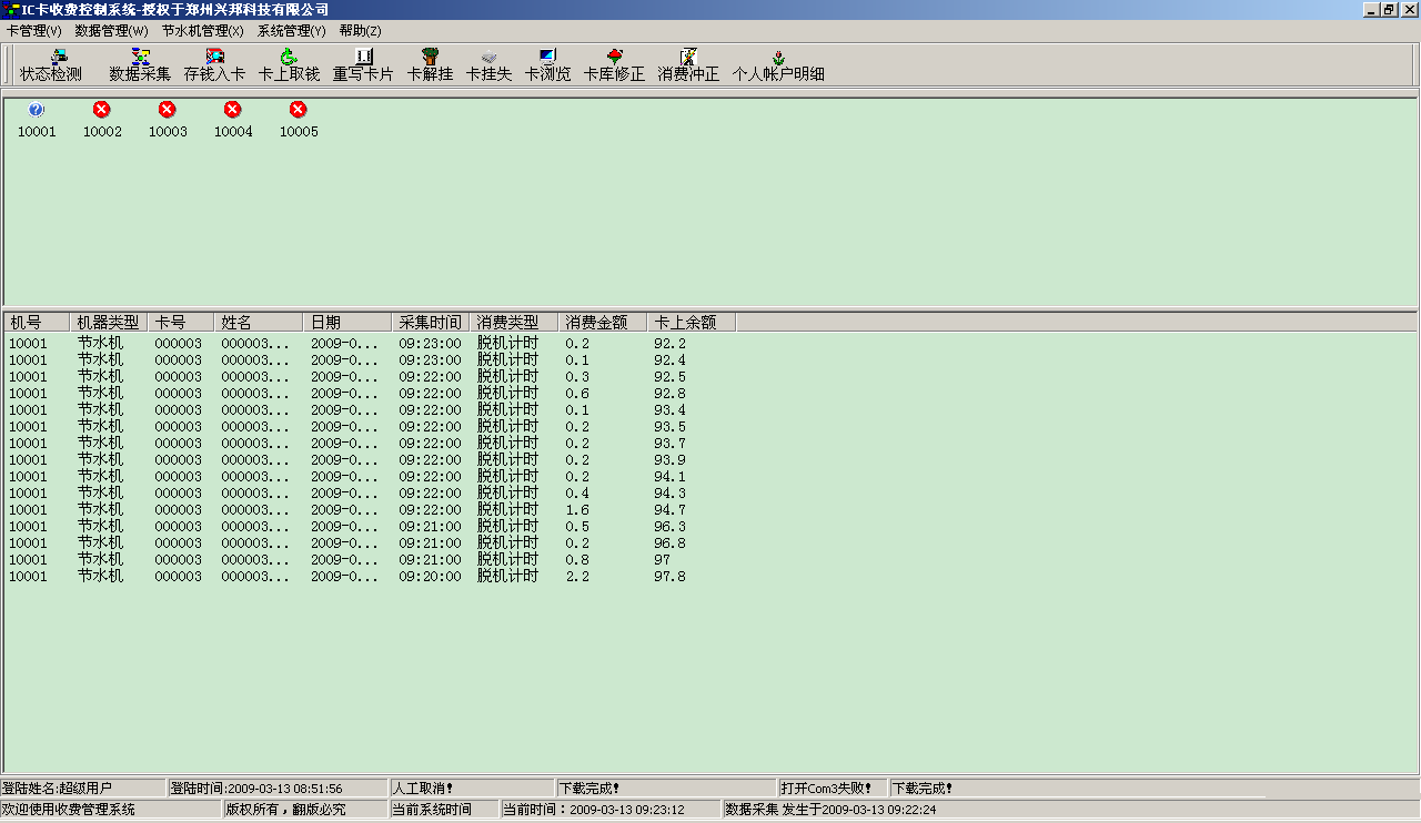 數(shù)據(jù)采集窗口用于查看數(shù)據(jù)的采集情況,在進(jìn)行消費(fèi)的時(shí)候,最好不要對(duì)水控機(jī)進(jìn)行數(shù)據(jù)采集,我們不建議對(duì)機(jī)器進(jìn)行邊操作邊進(jìn)行數(shù)據(jù)采集。