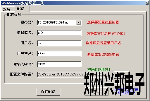 配置文件路徑:選擇WebService路徑下的(步驟五中選擇的webservice路徑)Web.config 單擊【保存配置】按鈕。