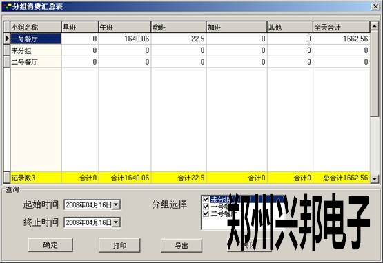 根據(jù)時間查詢出每組機器在每個時間段和所有時間段的消費匯總情況,此表一般在給餐廳結帳時使用。