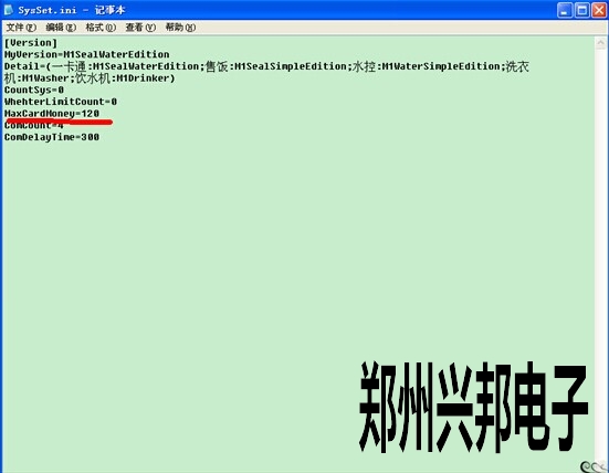 電腦桌面上找到485售飯機軟件圖標,然后光標停在此軟件圖標上右擊--屬性--查找根目錄,點開后打開軟件文件夾,也就是找到帶有軟件圖標的文件夾,然后找到SYSSET.INI此文件,雙擊打開,把MAXCARDMONEY=XX,更改成自己所需要的即可,如下圖:有一卡通,售飯,水控,洗衣機,飲水機等相關(guān)的中文數(shù)字,現(xiàn)在只需要把maxcardmoney=120,此時卡上總額最多只能存款為120,超過此金額就無法存款。