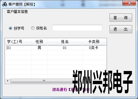 當掛失卡找到后就需要對卡片解掛,重新使用。在卡管理中右鍵點擊解掛,輸入需要解掛的學號或者姓名點擊查詢,出現(xiàn)卡信息,將卡片放于讀卡器上,雙擊信息,卡片信息與卡片必須一致,否則會出現(xiàn)提醒卡片與信息不符,不是掛失卡不能進行解掛操作。雙擊解掛成功后,此卡片狀態(tài)為正常卡。在操作過程中完成后再將卡片拿走,否則容易導致卡片異常。