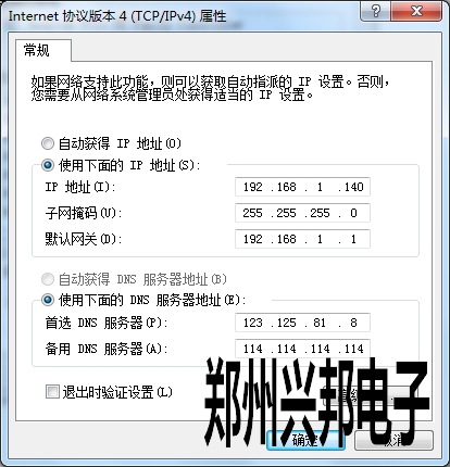 3、子網(wǎng)掩碼采用默認(rèn)設(shè)置,網(wǎng)關(guān)填寫(xiě)要與網(wǎng)段一致,192.168. 所才網(wǎng)關(guān) .1。