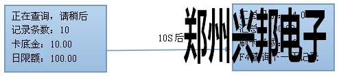 設(shè)置好固定的轉(zhuǎn)賬金額后,將卡片在刷卡區(qū)中央附近輕輕一靠便可,轉(zhuǎn)賬成功后會(huì)有語音提示轉(zhuǎn)賬成功或者播報(bào)轉(zhuǎn)賬金額,轉(zhuǎn)賬機(jī)顯示界面會(huì)顯示轉(zhuǎn)賬金額,大錢包和小錢包的當(dāng)前金額。如下圖所示: