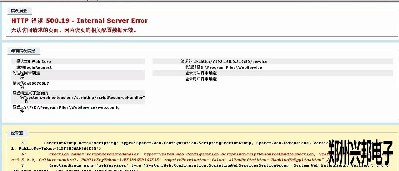 客戶使用的互聯(lián)網(wǎng)一卡通食堂售飯機,在裝好軟件后配置有誤,瀏覽service時提示應(yīng)用程序中的服務(wù)器錯誤.出現(xiàn)這種情況是怎么回事呢?