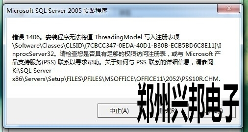 客戶使用的我們的互聯(lián)網(wǎng)一卡通食堂售飯機(jī),在安裝數(shù)據(jù)庫SQL2005時出現(xiàn)SQL server 2005 錯誤  1406. 未能將值 CLSIDThreadingModel寫入注冊表項(xiàng)\Software\Classes\PROTOCOLS\Handler\ms-help. 怎么辦