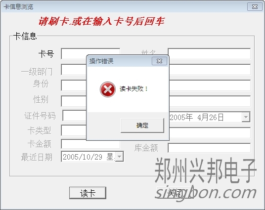 [文章內(nèi)容簡介]:在讀卡器上讀卡時,操作錯誤提示:讀卡失??!