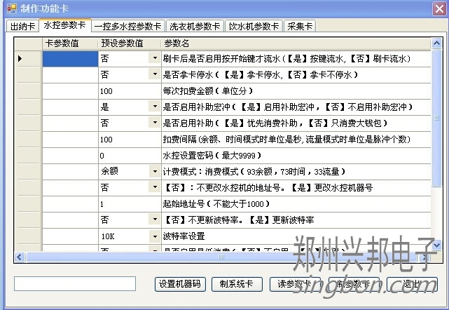 互聯(lián)網(wǎng)一卡通水控一體機(jī)的費(fèi)率設(shè)置是需要在軟件里制一張設(shè)置卡,然后拿制好的卡片到機(jī)器上去刷一下。制費(fèi)率卡的步驟如下: