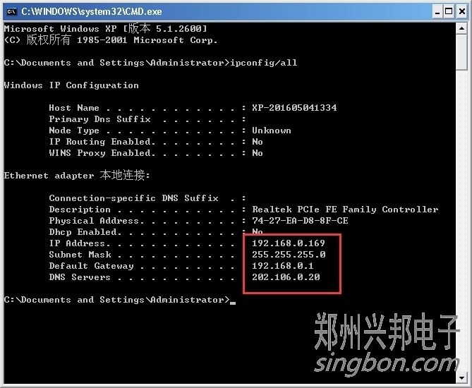 1.通過命令行來查看電腦的IP、網(wǎng)關(guān)、和DNS,步驟大致為:開始>>運行>>輸入‘’cmd‘’>>輸入"ipconfig/all",點擊回車,可以看到下圖界面