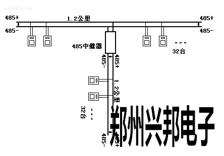 利用485中繼器延長(zhǎng)網(wǎng)絡(luò)距離圖示:
